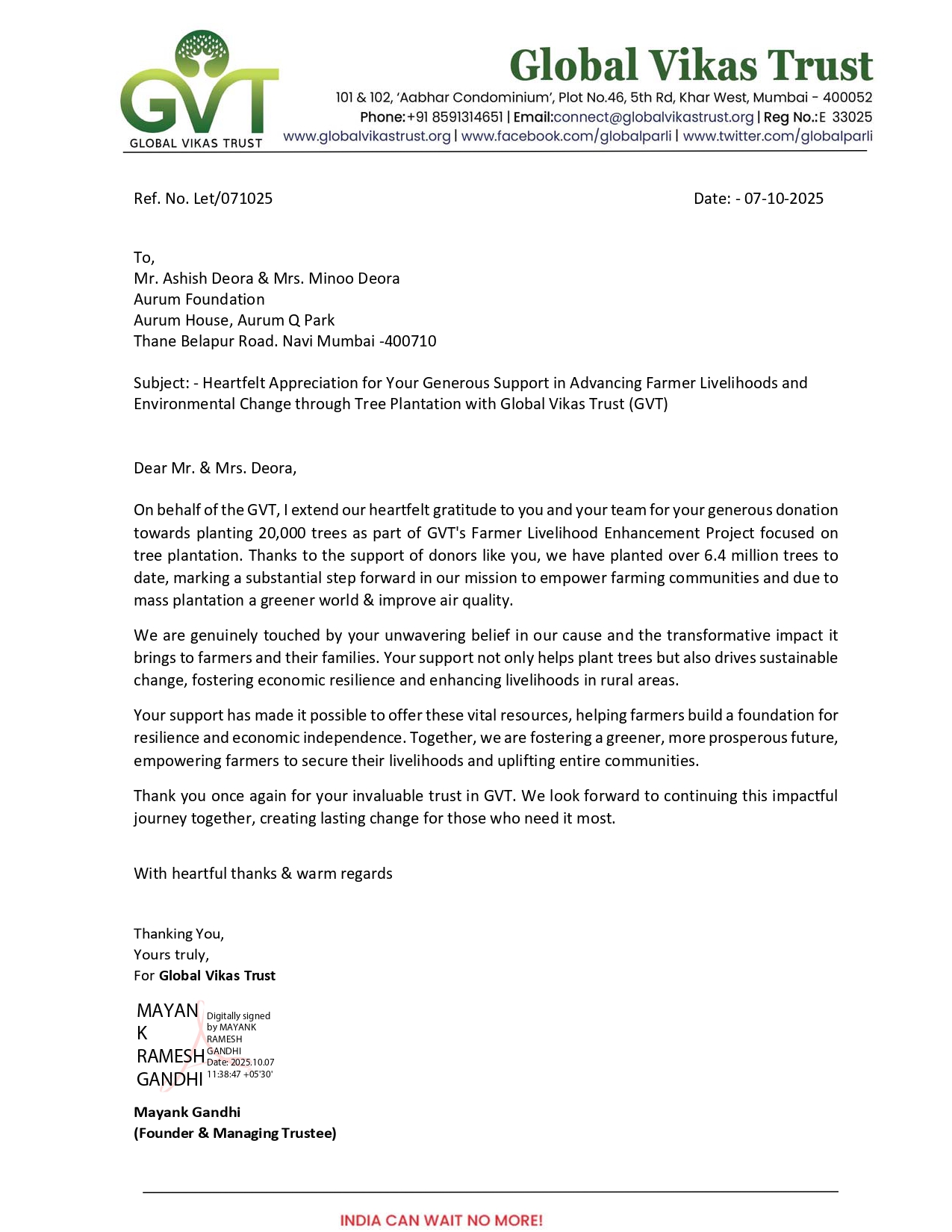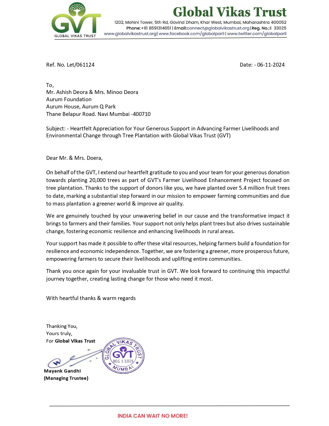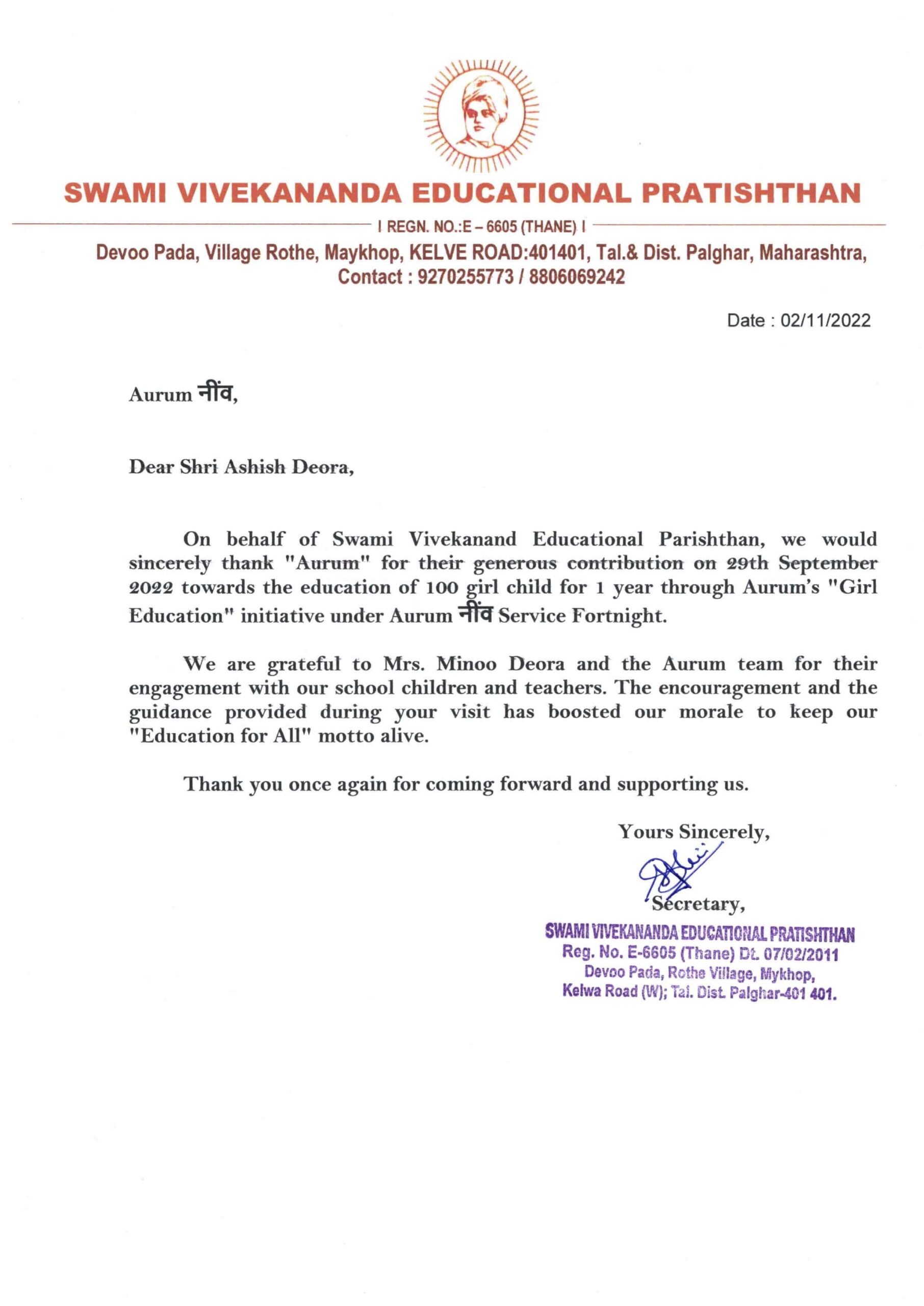 , was laid to give impetus to the philanthropic initiatives of Aurum. What began as a soulful journey for me and my wife a decade back, has today been adopted by 120+ Aurum members.