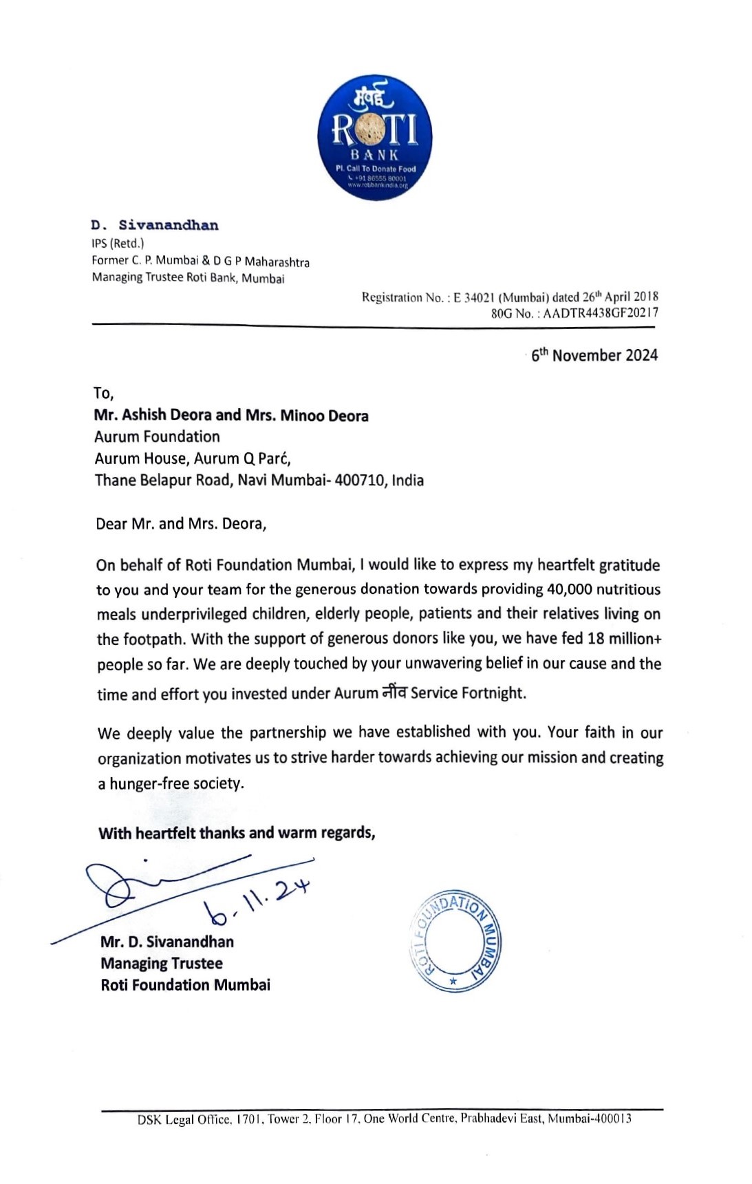 AURUM & MUMBAI ROTI BANK INITIATIVE